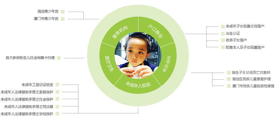 未成年人一般是指未满十八周岁的公民。在这里我们梳理了从新生儿到18周岁的青少年所享有的各项服务。未成年人是祖国未来的建设者, 是中国特色社会主义事业的接班人,关爱未成年人的成长是社会共同的责任和义务。